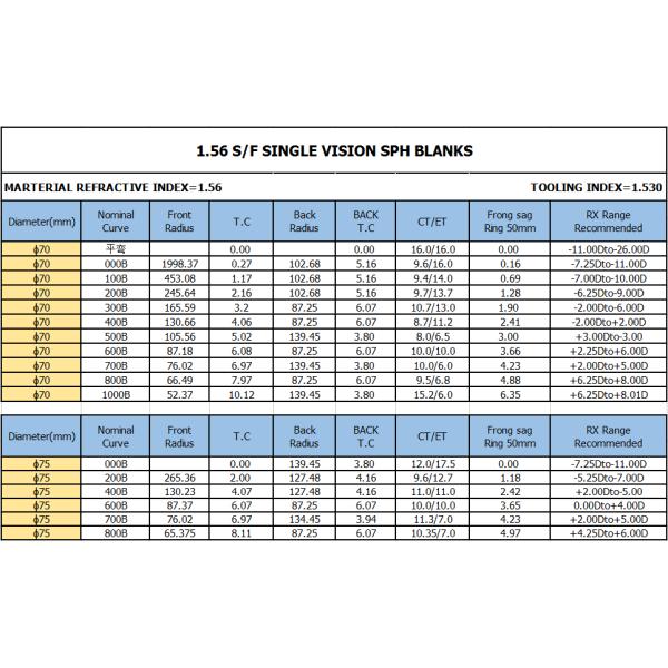 | 1.56 semi finished single vision lens | NK55, imported from Japan | 70/75mm | hard coated |