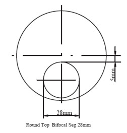 One popular fused bifocal is the round seg bifocal. Round-top bifocals are further described by the width of the near segment, measured in millimeters (mm). The most popular RT bifocal is the RT-28, a round-top bifocal with a near seg that is 28 mm wide.