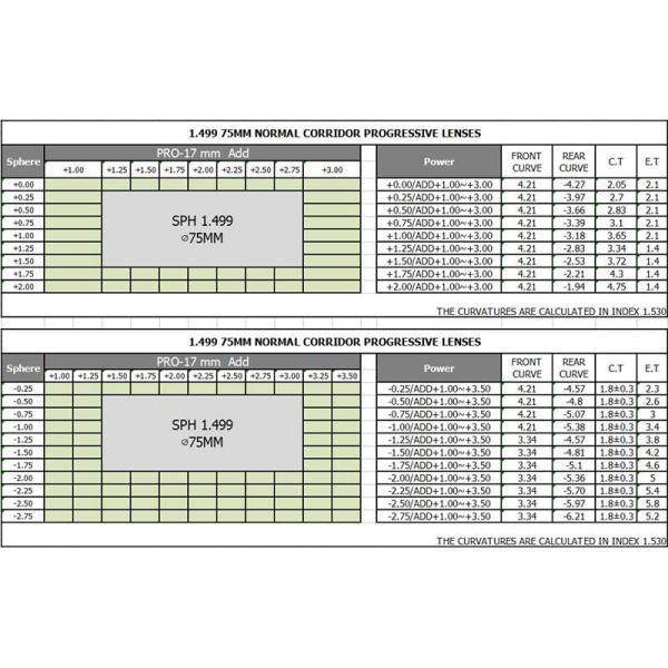 CR 39 1.499 Prescription Anti Glare Lenses Multifocal Vision 75mm Diameter Images |